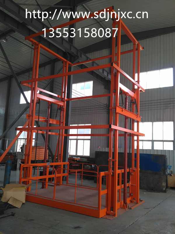 導軌式液壓升降平臺應用: 導軌式液壓升降平臺是一種非剪叉式液壓升降平臺,廣泛應用于工礦企業代替電梯提升貨物,具有結構簡單、載重量大、使用壽命長、維護方便、安全使用等特點。尤其適用于帶井道地下無法挖地基的場所。 液壓升降平臺安全使用小提示: 1.升降機在使用時,工作臺面應保持水平狀態。 2.室外作業,當風力較大時,五米以上應系安全繩。 3.該平臺在升降過程中,嚴禁一切人員攀爬,若需維修,升起后應將升降平臺固定牢方可進行。 4.液壓升降機png太起后不得移動,四個支腿未撐緊不得起升作業。 5.在使用過程中嚴禁超載作業,所載物品應安全放置在工作臺上,不得移動。 6.所用液壓油應保持清潔,不得混入水及其它雜質,一般每半年更換一次。液壓油 一般冬季用N32號;夏季用N46號。 7.當出現故障時應及時切斷動力電源進行維修。