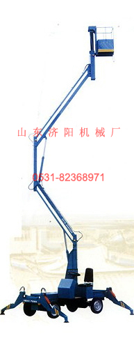 一、產品說明:曲臂式升降機是山東濟陽機械廠最新研制的高空作業設備,具有操作簡單體積小,重量輕,價格便宜,外形美觀、作業面積大、移動方便,特別是能夠跨越障礙物進行作業等優點、是理想的登高作業設備。廣泛應用與車站、碼頭、賓館大廳、倉庫、車間以及供電和建筑裝璜等部分需要高空作業的場合。