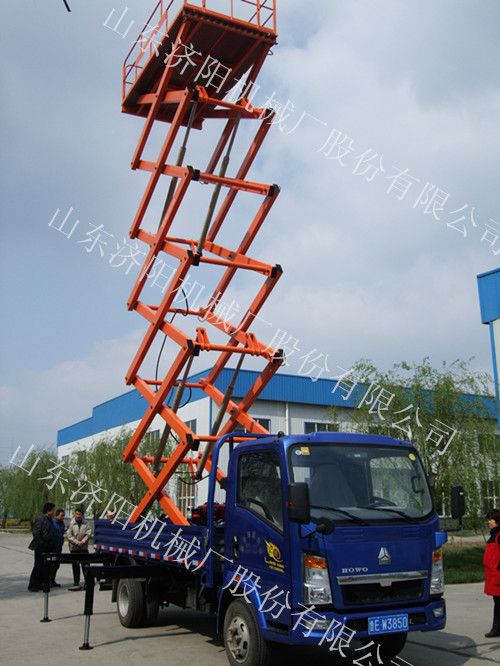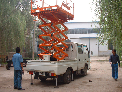 車載剪叉式升降平臺:車載式升降平臺是由升降平臺與汽車改裝的高空作業設備。該設備集四輪移動式與二輪牽引式于一身,采用汽車或電瓶車底盤作平臺底架,利用汽車本身發動機或直流電作動力,實現升降平臺的升降、行走功能,使升降平臺具有更好的靈活性和機動性,提高了高空作業效率,廣泛用于城建、油田、交通、市政建設等區域范圍廣、流動性大的高空作業。汽車可由客戶自行提供或根據客戶的要求我們幫助采購。